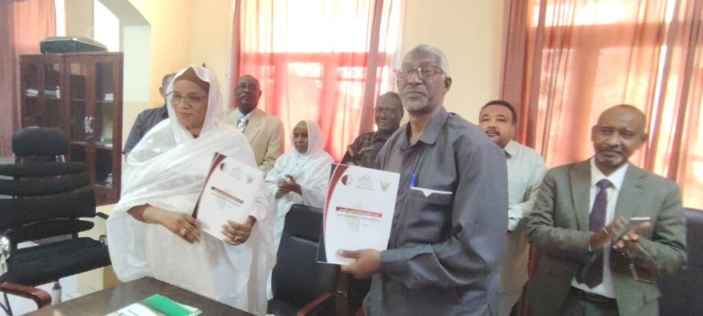 وتم التوقيع بتشريف والي الولاية الفريق الركن قمر الدين محمد فضل المولى، ووزير المالية بالولاية فاطمة الحاج الطيب، والوزير المكلف لوزارة الإنتاج والموارد الاقتصادية المهندس وصال الشيخ فرح، والمستشار الاقتصادي للوالي الدكتور مصطفى الجاك، ومدير الإدارة القانونية، المستشار القانوني للولاية الدكتور مبارك بابكر عبد الرزاق، ولفيف من إدارات وزارة الإنتاج والموارد الاقتصادية.